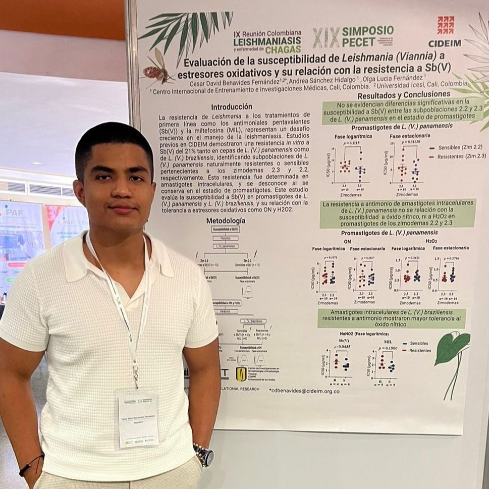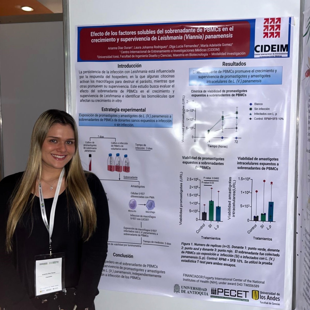 Participó en la modalidad poster con su trabajo de grado, titulado “Evaluación de la susceptibilidad de Leishmania (Viannia) a estresores oxidativos y su relación con la resistencia a antimonio pentavalente.”