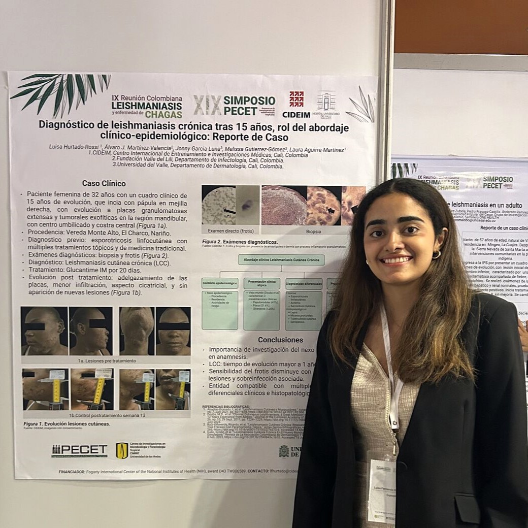 “Fue interesante exponer este caso en la reunión académica con otros investigadores. Compartir perspectivas sobre la base clínica, social e inmunológica de esta enfermedad, es importante para el abordaje de este tipo de pacientes, que con mayor frecuencia vemos en CIDEIM. Durante mi formación, siempre me ha gustado mucho la medicina basada en la evidencia, que está en constante desarrollo y personalización, y donde, principalmente, se buscan establecer las mejores alternativas para el paciente. Para esto, es fundamental la investigación clínica. Como fellow en CIDEIM, he tenido la oportunidad de estar involucrada en scoping reviews, ensayos clínicos y de laboratorio, además de complementar mis conocimientos en enfermedades tropicales, dermatología e infectología. En el área de investigación clínica, he ampliado mi conocimiento en epidemiología, buenas prácticas clínicas y bioestadística”.
