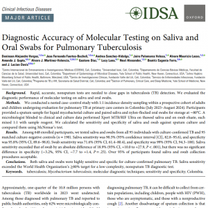 Referencia del artículo: Diagnostic Accuracy of Molecular Testing on Saliva and Oral Swabs for Pulmonary Tuberculosis. Acceda al estudio aquí: https://doi.org/10.1093/cid/ciag055